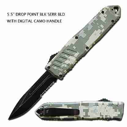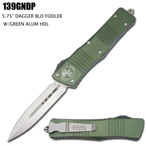 1918 US Black D/A OTF Trench Automatic Knuckle Knife Two Tone Dagger. Overall Length: 9 Inches Blade Length: 3.5 Inches Blade Material: 440 Stainless Steel, Powder coated black finish Blade Style: Dagger Handle Length: 6 Inches Handle Material: Cast metal, Heavy duty construction Includes: Pocket Clip, Glass breaker, belt sheath.