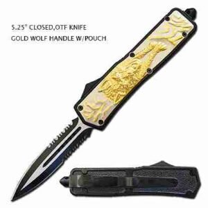 8.75″ Classic Golden Italian Stiletto Switch Blade Automatic Knife