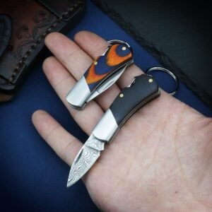 Super Mini Fold Knife Keychain Stainless Steel/Damascus Steel Portable Pocket KeyChain Ring EDC Tiny Folding Knife Dropshipping – Damascus steel