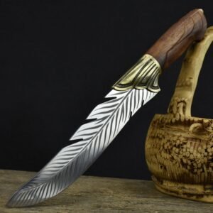 Hunting Knife With Holster 7Cr17MoV Handmade Forged Steel Kitchen Knife Sharp Utility Boning Steak Beautiful Knife With Patterns – 6.5in Steak Knife-B