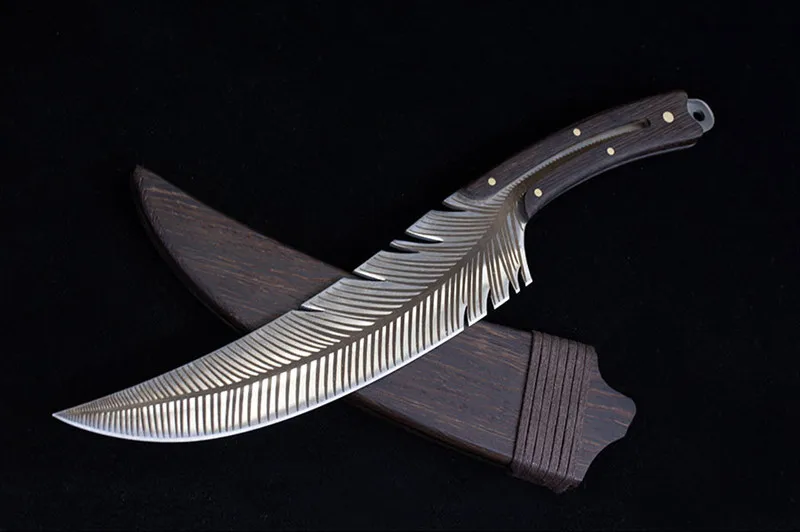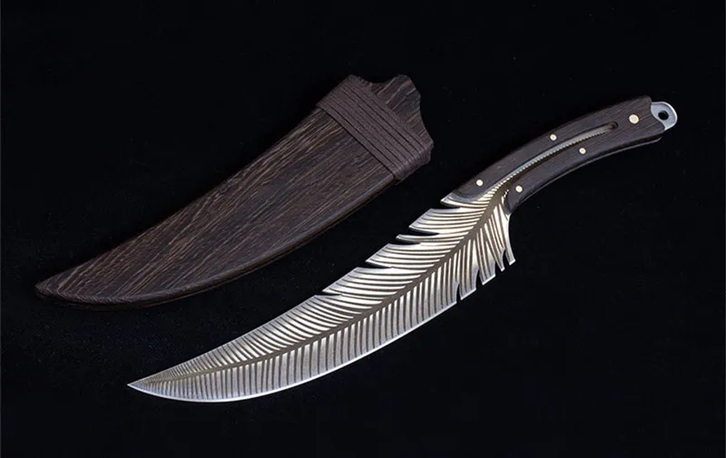 Hunting Knife With Holster 7Cr17MoV Handmade Forged Steel Kitchen Knife Sharp Utility Boning Steak Beautiful Knife With Patterns – D And Wood Cover